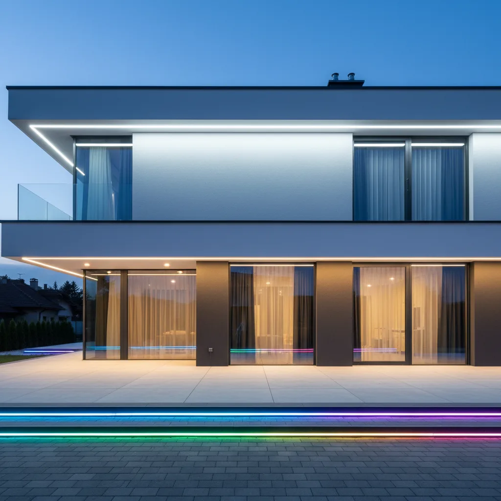 To najbardziej zaawansowana taśma LED w naszej historii – prawdziwy „kombajn” technologiczny, który łączy w sobie cztery potężne funkcje: bezpunktową linię światła COB, pełną paletę barw RGB, zmienną temperaturę bieli CCT (od 2700K do 6500K) oraz cyfrową inteligencję Digital. Dzięki temu jeden odcinek taśmy może być rano energetycznym światłem do pracy, wieczorem ciepłym podświetleniem nastrojowym, a w nocy dynamiczną, wielobarwną animacją płynącą w rytm muzyki. Wszystko to bez widocznych punktów świetlnych i bez żadnych kompromisów jakościowych.