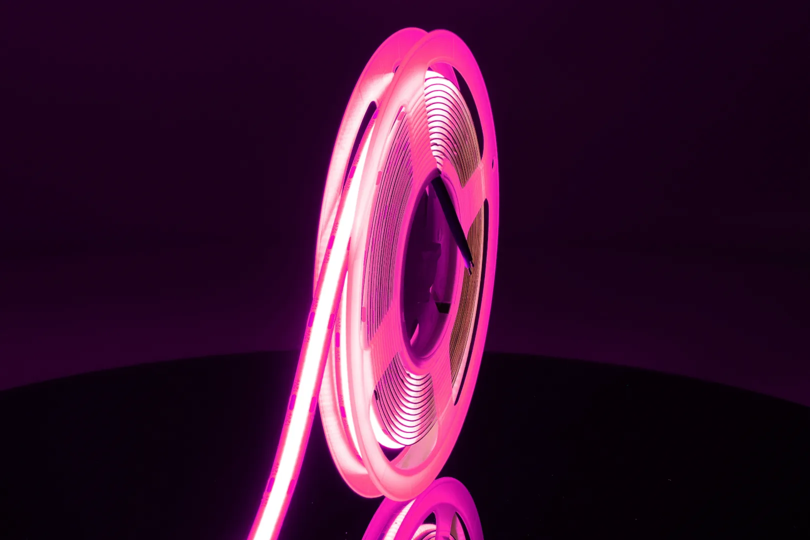 Jeśli Twój projekt wymaga konkretnego uderzenia kolorem, wersje Single Color COB są bezkonkurencyjne. Zapomnij o wyblakłych barwach – nasze taśmy w odcieniach różu, fioletu, błękitu czy zieleni oferują głębokie, soczyste nasycenie na całej długości. Dzięki technologii COB, kolorowy „neon” jest teraz dostępny w formie elastycznej taśmy, która idealnie wypełnia profile meblowe i architektoniczne, nadając wnętrzu nowoczesny, niemal futurystyczny charakter bez widocznych diod.