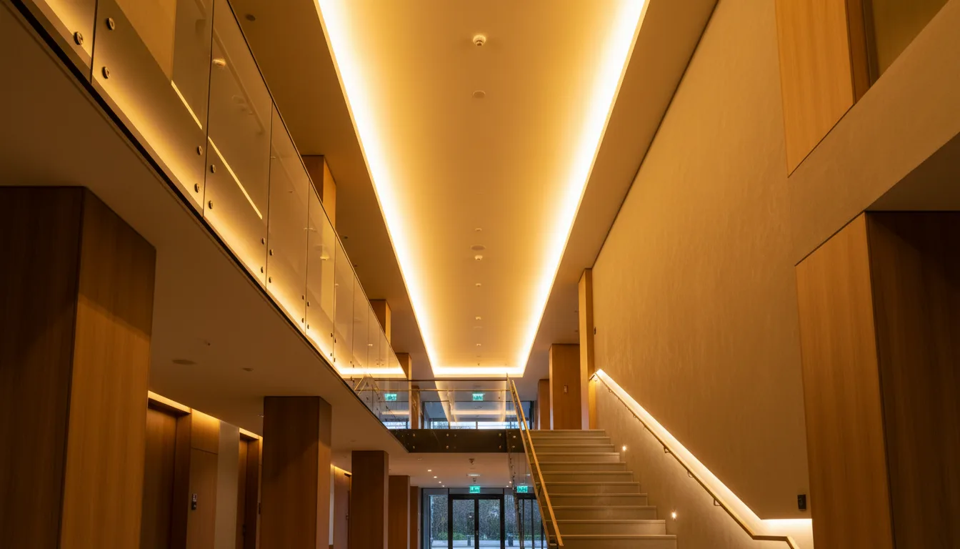Taśmy COB Prescot charakteryzują się nie tylko brakiem kropek, ale też znacznie szerszym kątem świecenia (180°) w porównaniu do tradycyjnych diod SMD. Światło rozchodzi się miękko i wypełnia całą przestrzeń profilu, eliminując cienie na krawędziach. To najbardziej estetyczny wybór do podświetleń pod szafkami kuchennymi, przy lustrach oraz w nowoczesnych wnękach sufitowych, gdzie liczy się nieskazitelna czystość formy.